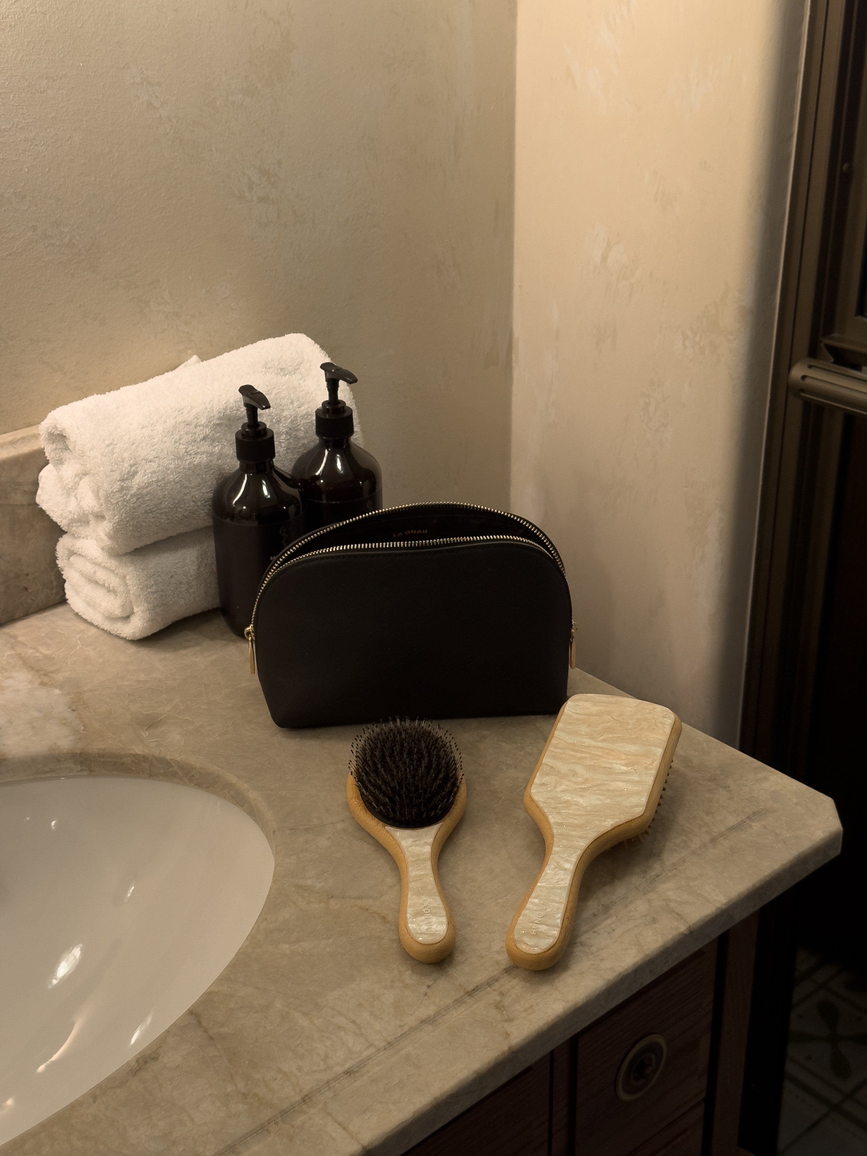 To maintain your brushes, gently remove any hair or buildup using a soft-bristled brush, toothbrush, or cloth. For a deeper cleanse, lightly dip the bristles in warm soapy water or distilled white vinegar, then dry the brush facing downward. Avoid soaking or fully submerging your brushes, as excess moisture can cause swelling, warping, or splitting. For best results, keep your brushes away from the shower and other damp environments.