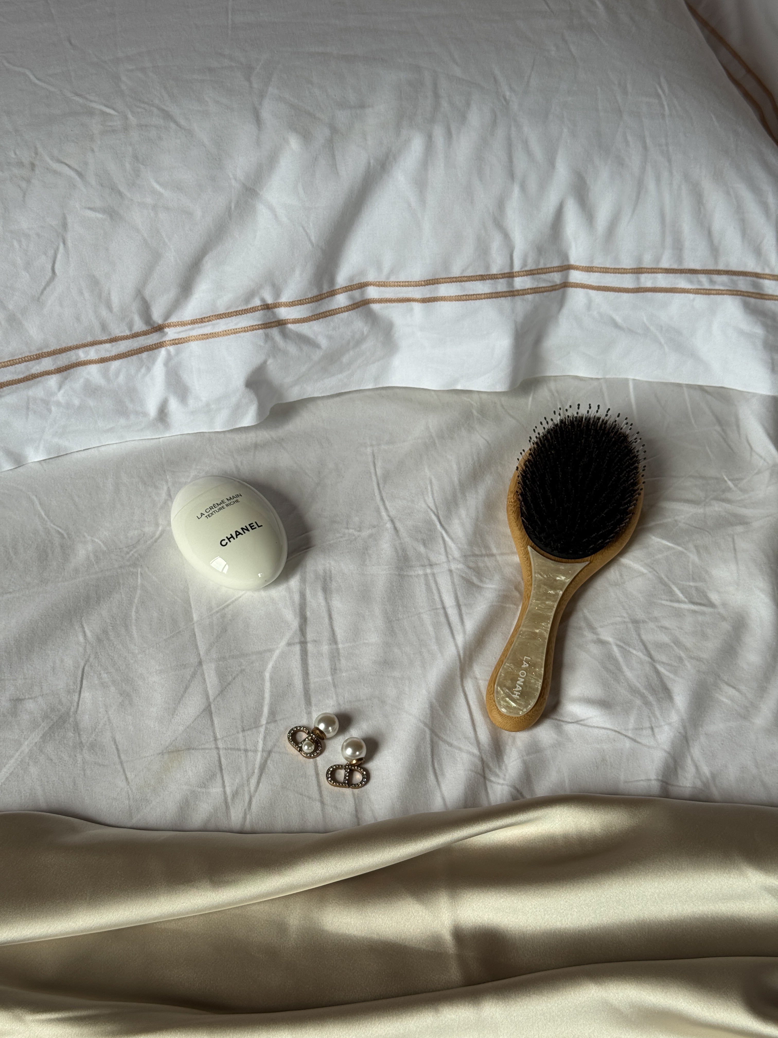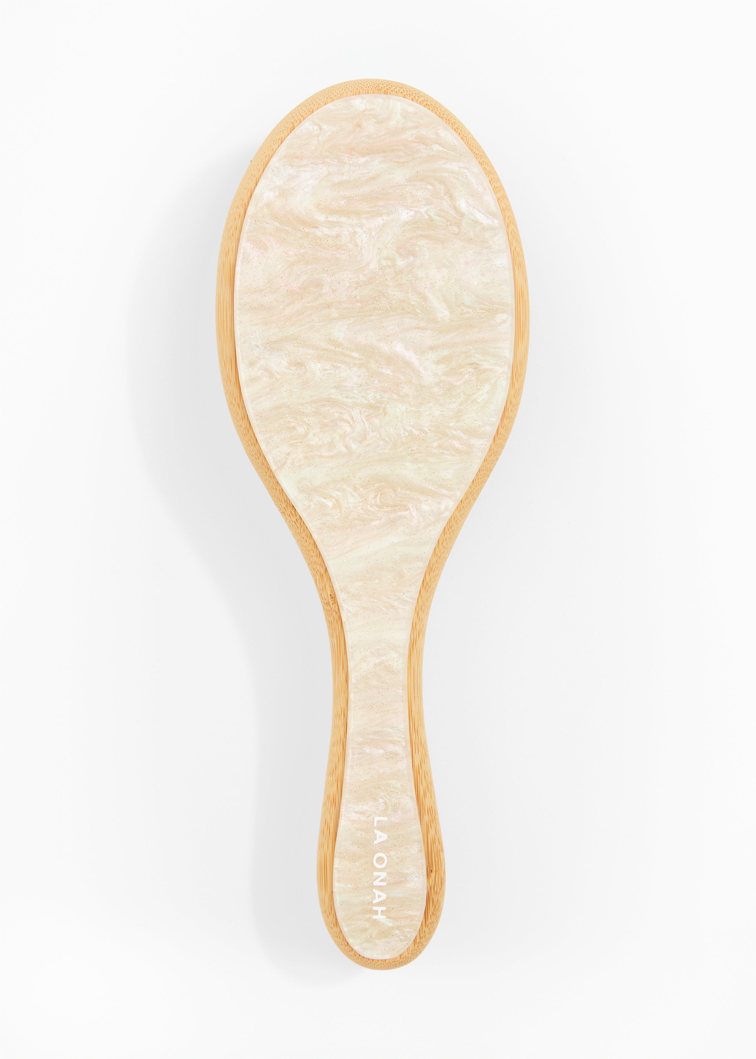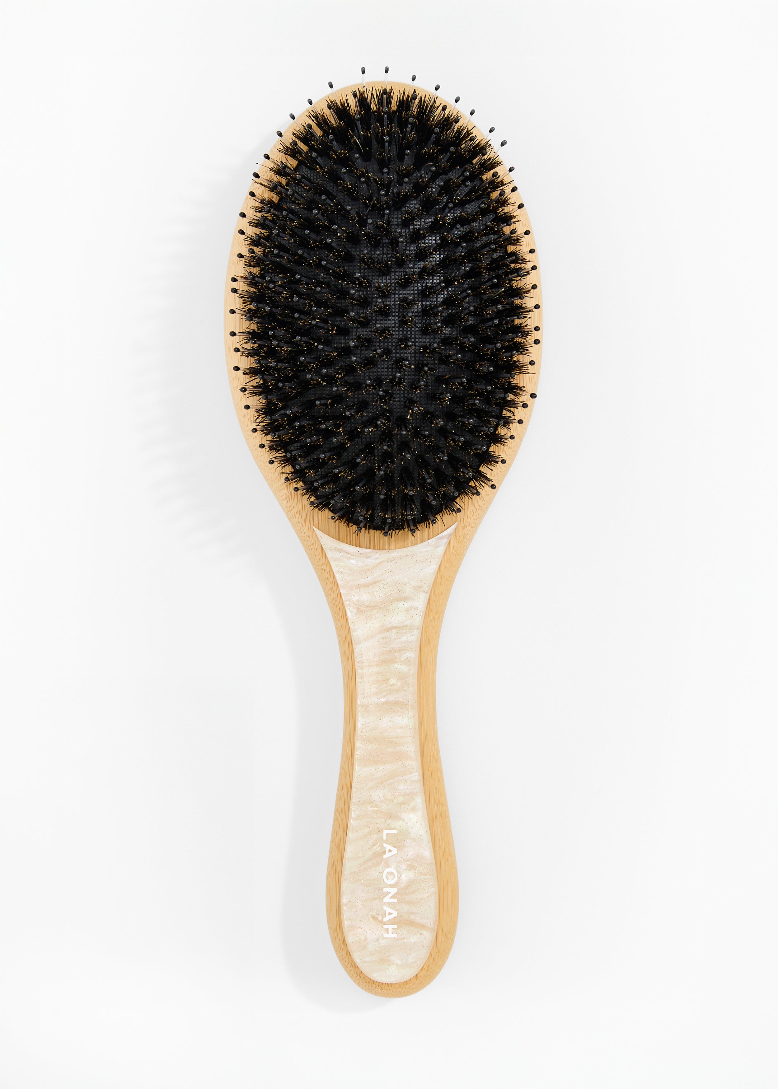 Thoughtfully crafted for both functionality and care, this bamboo brush combines flexible nylon bristles that glide smoothly through the hair with natural boar bristles that tame unruly strands leaving your hair shinier. Suitable for every hair type, it transforms everyday brushing into a moment of simple luxury, leaving your hair effortlessly polished and beautifully nourished.