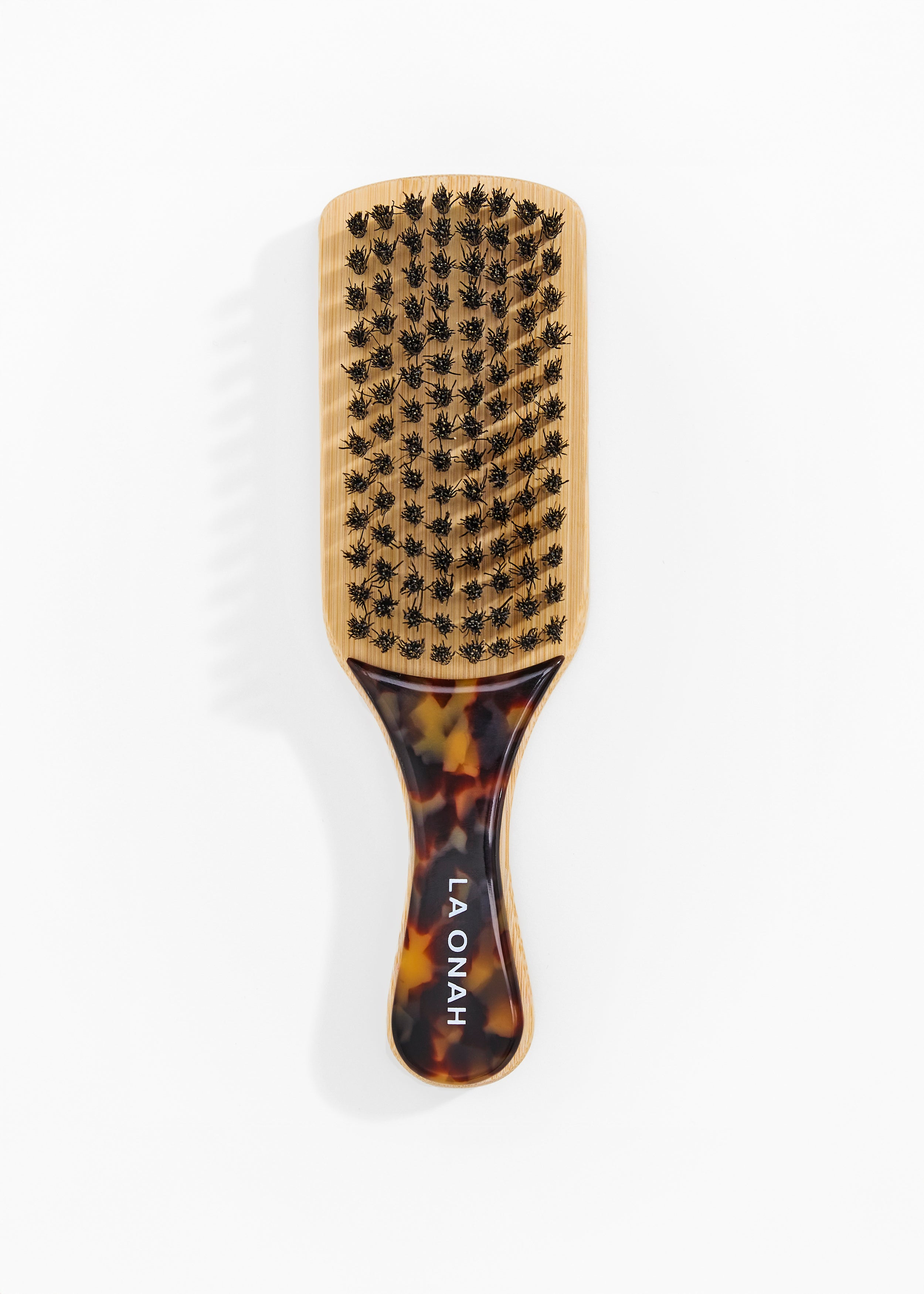 - Organic bamboo handle and natural boar bristles with cellulose acetate front and back