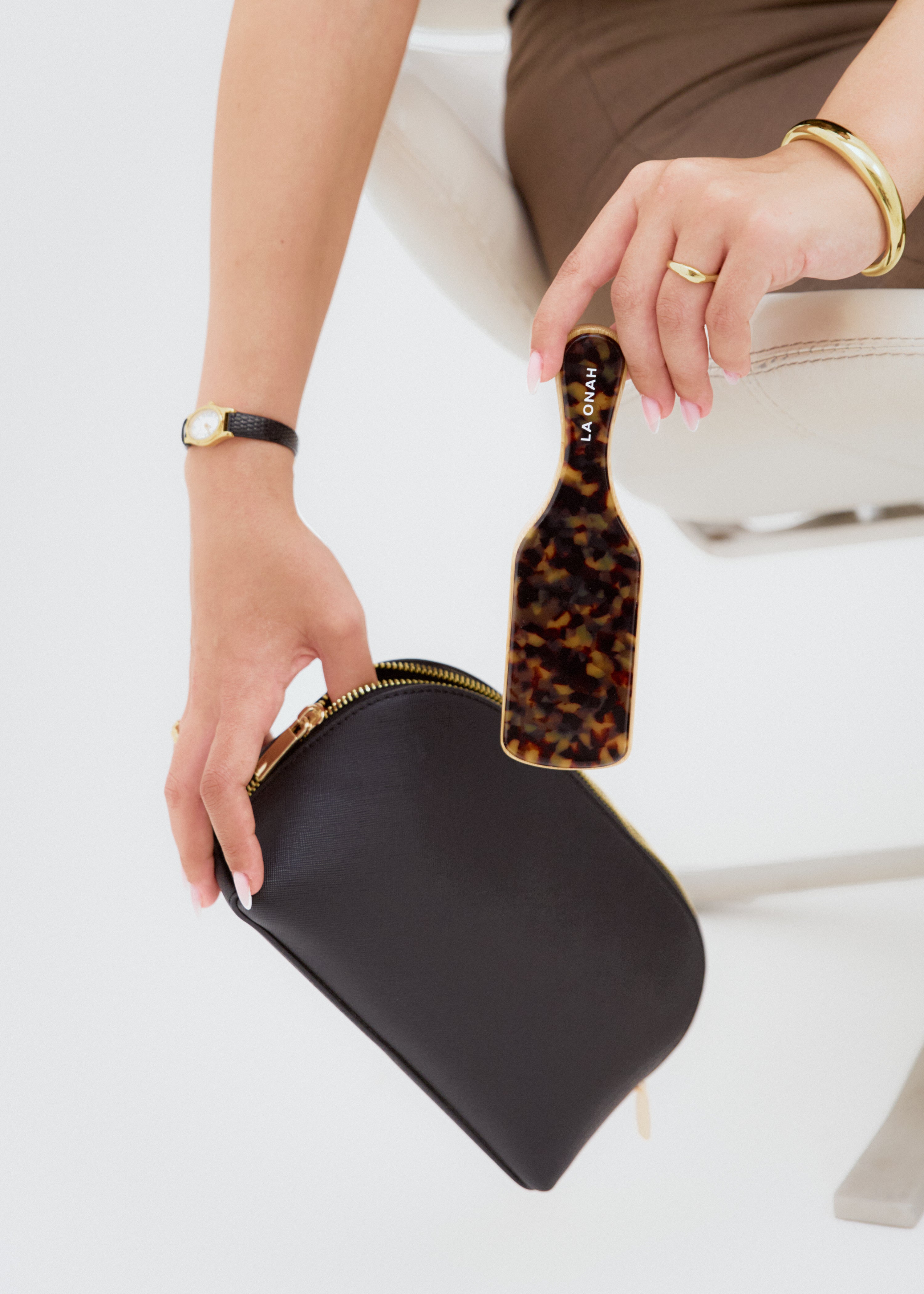 This high quality natural boar bristle brush is the perfect styling tool. The brush effortlessly tames the most unruly hairs, such as stubborn baby hairs, and helps smoothen your hair to succesfully achieve that iconic sleek look, such as a tight ponytail or bun.
