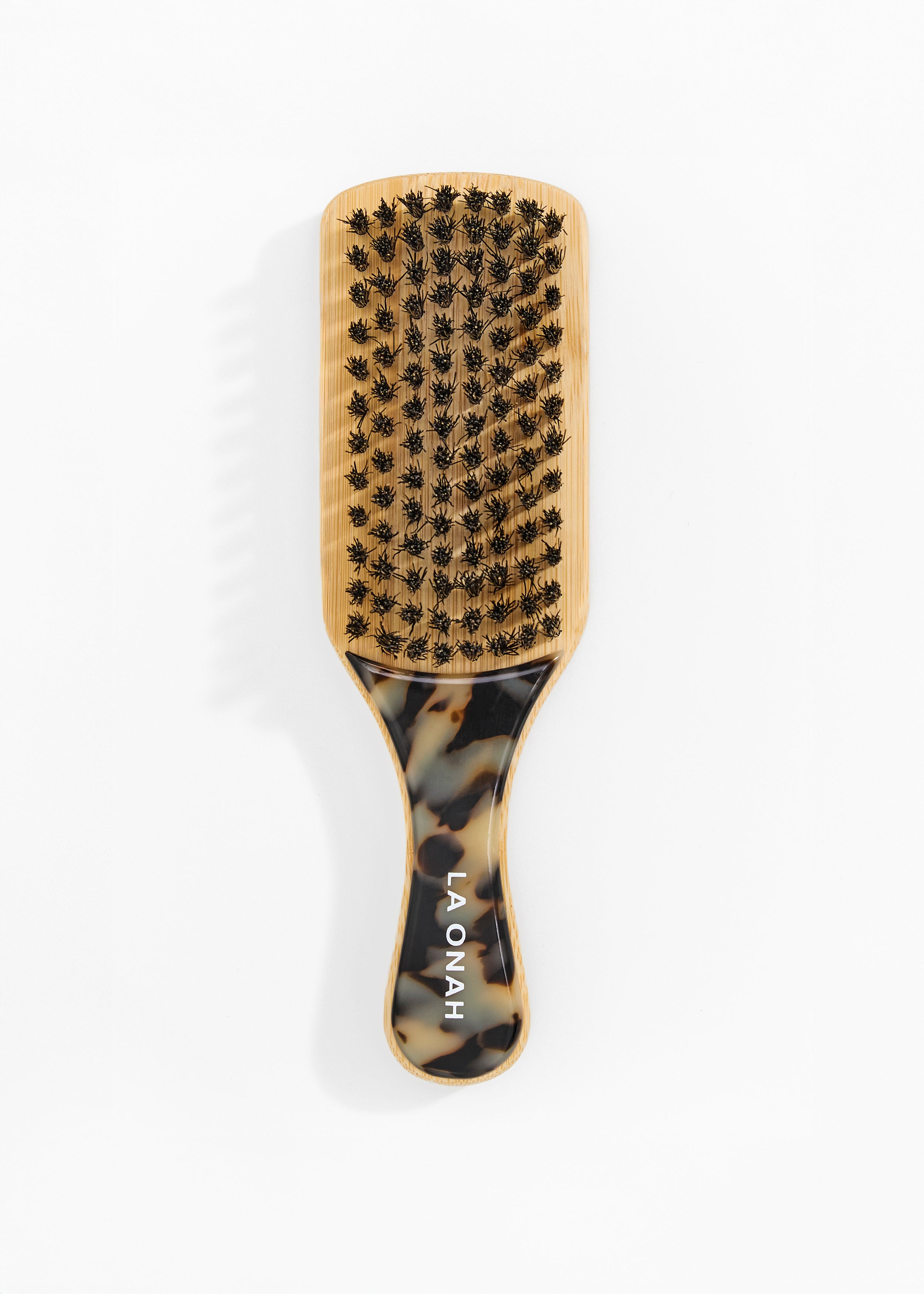 This high quality natural boar bristle brush is the perfect styling tool. The brush effortlessly tames the most unruly hairs, such as stubborn baby hairs, and helps smoothen your hair to succesfully achieve that iconic sleek look, such as a tight ponytail or bun.